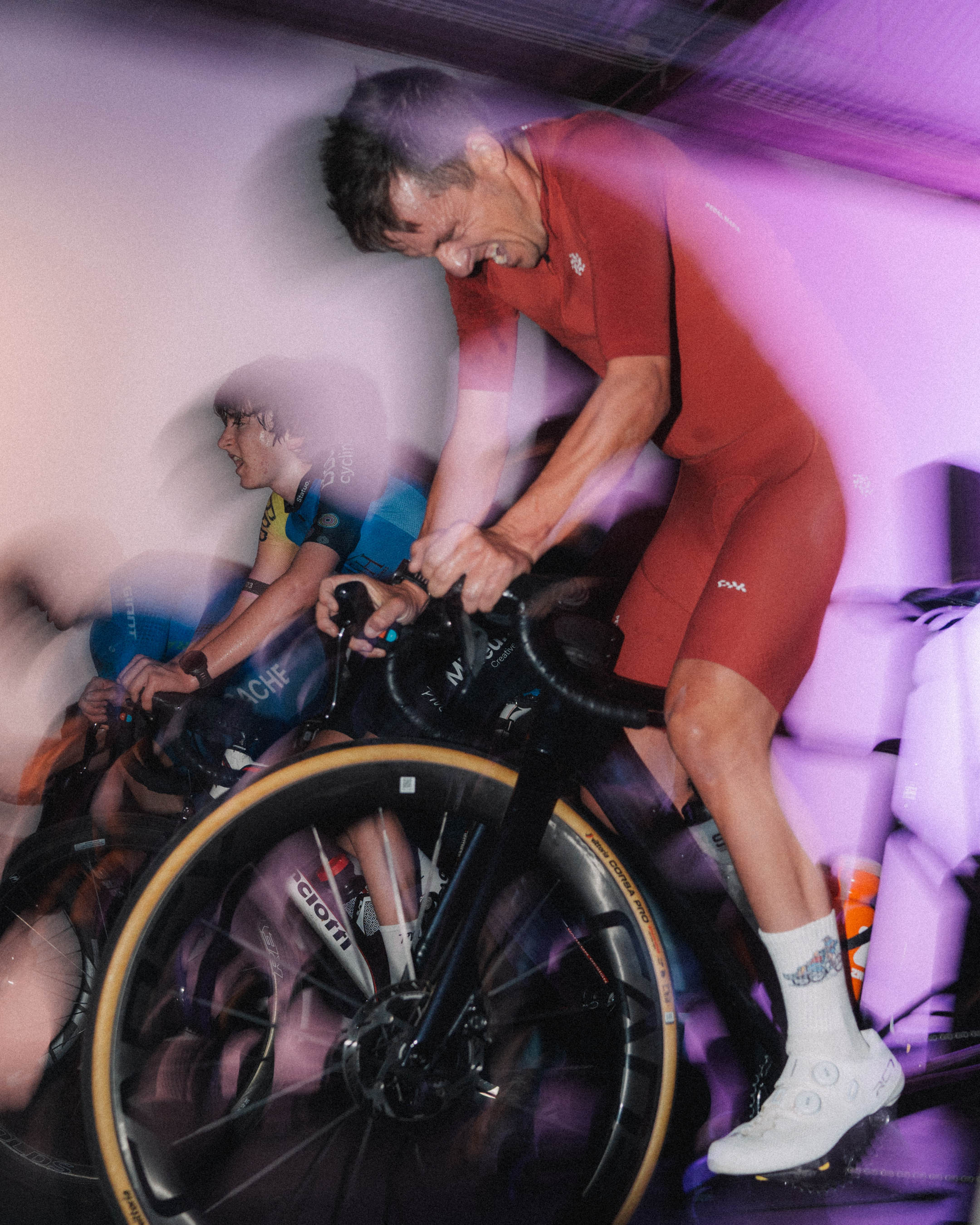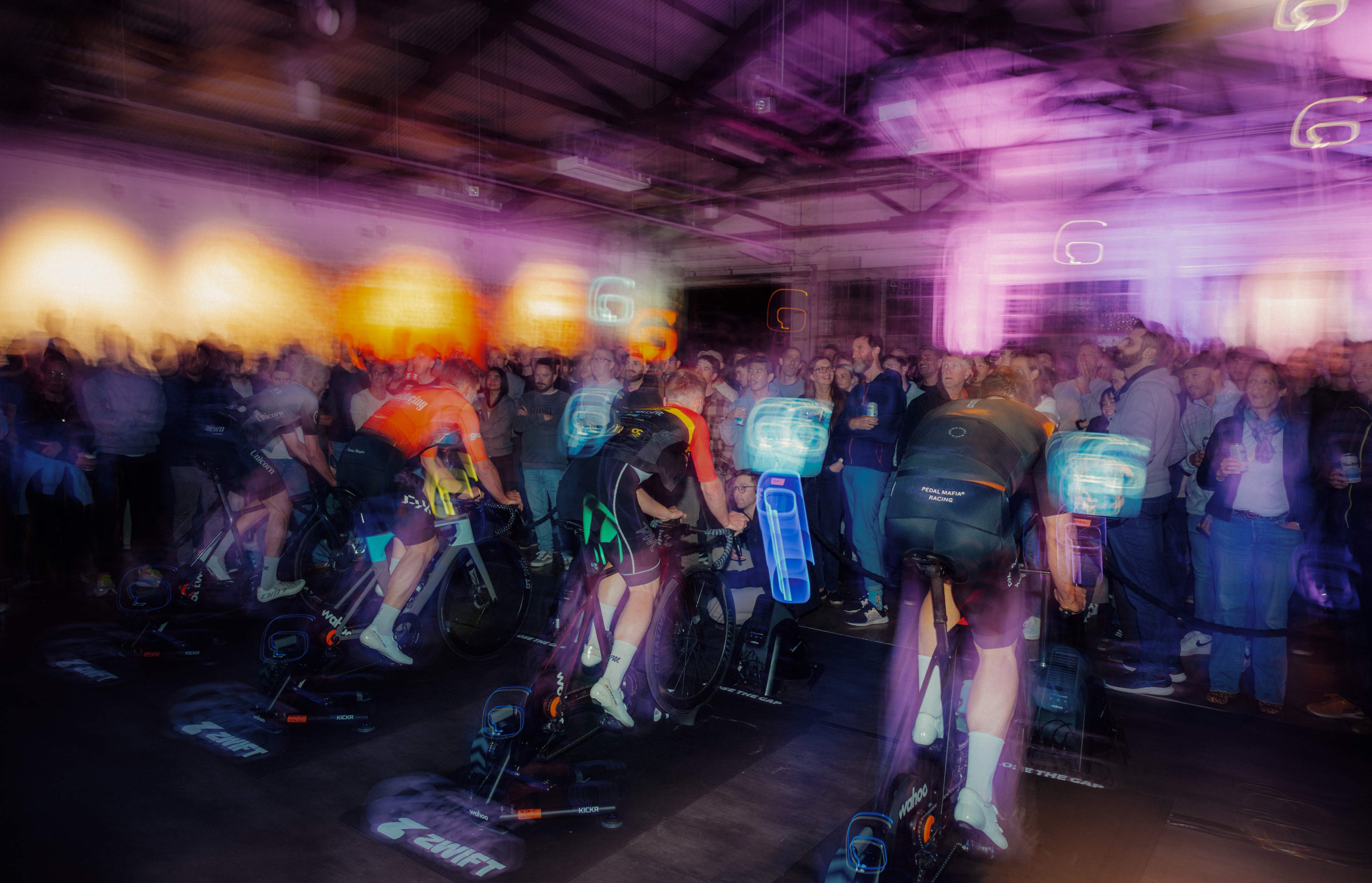 Last Friday evening, Pedal Mafia and Zwift hosted a unique indoor racing experience in a converted warehouse space tucked within West Perth’s Pickle District. The venue, styled with florals in soft lavender and sky blue, was brought to life through lighting that matched the tones of the Pedal Mafia kit. From the moment the doors opened, it was clear this was more than just a race. It was an experience carefully built to celebrate performance, culture, and community.
