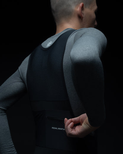 The Pedal Mafia PRO Merino Base Layer is the ideal foundation for your cold-weather cycling kit. Designed to perform in the most demanding riding conditions, this base layer is crafted from premium merino wool, renowned for its ability to regulate body temperature, wick away moisture, and resist odours.