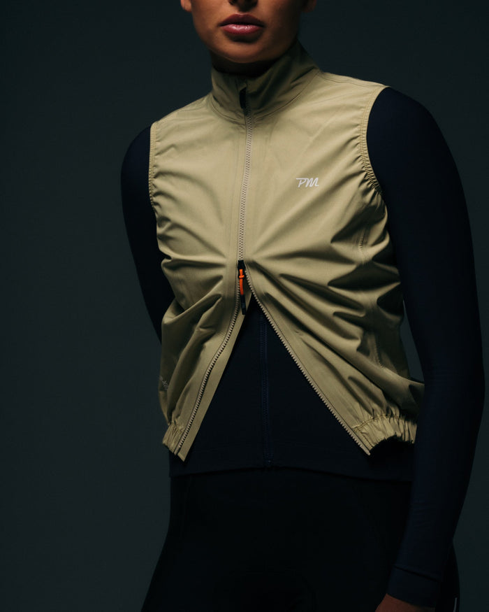 The Pro Heavy Rain Vest, constructed from Sympatex membrane fabric, adeptly absorbs water vapour generated during exercise and expels it to the exterior while preserving its 100% waterproof integrity. Featuring waterproof taped seams and a YKK Aquaguard zipper, this vest ensures effective warmth retention in cold and rainy conditions. The custom silicon PM Puller empowers riders to seamlessly move the bottom YKK Aquaguard zipper slider, providing convenient access to rear pockets and allowing for the maintenance of optimal body temperature. Paired with a mid-weight thermal layer, this combination enables riders to navigate through wet and cold conditions, ensuring a dry core and warm arms.