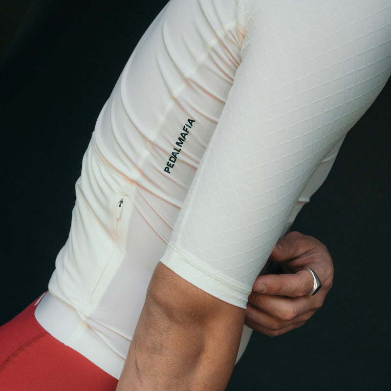 Engineered for uncompromising performance, the PRO Jersey delivers maximum comfort with a secure, race-ready fit. The body is constructed from lightweight, compressive knitted fabric that supports muscle movement without restricting mobility. Woven sleeves offer superior breathability and moisture-wicking capability while maintaining an aerodynamic profile.